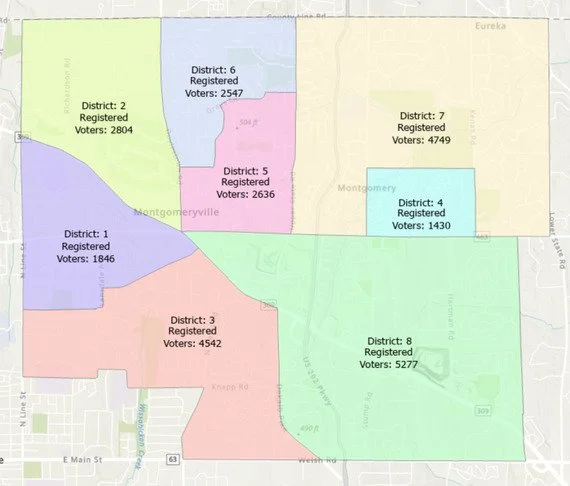 Three voting precincts in Montgomery Township have been proposed for realignment. Precincts 3, 7 and 8 have seen population growth causing long lines on Election Day.